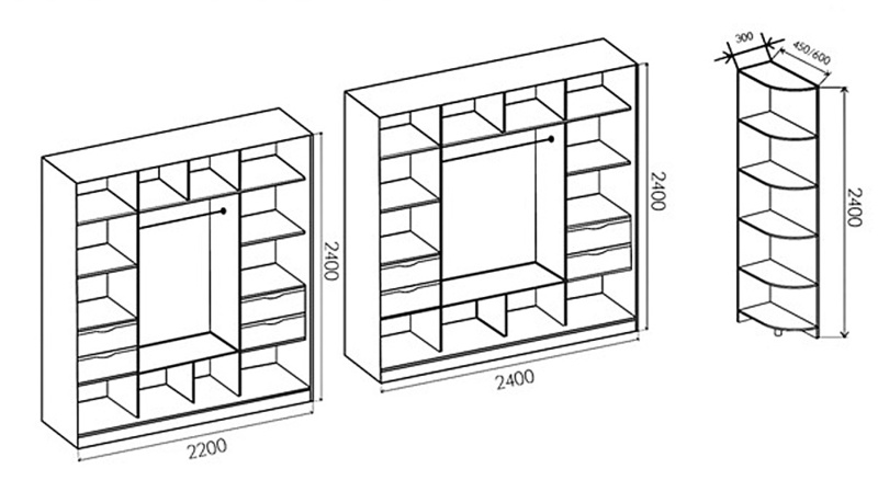 Шкафы купе двухдверные и трехдверные – замечательный выбор шкафов купе, они удобные, современные и продуманные. Комфортные отделения для одежды и для одежды на вешалках, регулируемые по высоте опоры подходят для всех видов полов, практичные выдвижные ящики и много вместительных полок. Используемые материалы и фурнитура высокого качества.
