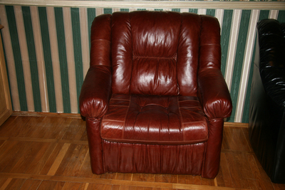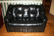 диван кожаный двухместный черный с пружинным блоком.кресло коричневое.диван 7000гр,кресло 4000гр..торг |