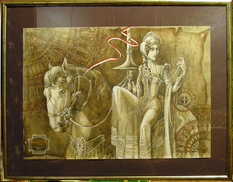 картина "Ядвига - покровительница Польши" материал-акварель, карандаш, рельефная паста 60*42 в оформлении 76*60 |