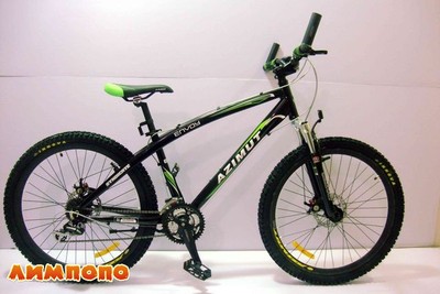 AZIMUT ENVOY B+. Одноподвесный велосипед 26 дюймов. Рама алюминиевая. Цвет: черный с зеленым.