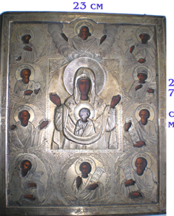 Курская-Коренная Икона Божией Матери Знамение. Академическая иконопись Оклад серебро позолотой размер 23 * 27 |