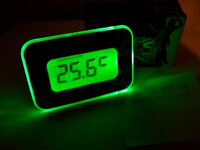 – стильные настольные часы-будильник с функцией термометра, сенсорным датчиком, разноцветной LED подсветкой. Никто не заподозрит, что этот модный гаджет является мощным прослушивающим устройством. Она очень проста в использовании - достаточно вставить GSM SIM-карту в слот находящейся внутри корпуса GSM прослушки, предварительно деактивировав проверку пин-кода на сим-карте. Благодаря этому будильнику с GSM жучком Вы сможете узнать, что происходит в радиусе 7 метров от устройства, находясь в любой точке мира! Есть функция обратного дозвона. Характеристики: GSM диапазон GSM 900MHz, 1800MHz; Питание: 3 быстро заменяемые батарейки ААА; режим ожидания до полной разрядки: зависит от качества используемых батареек и может варьироваться в пределах 2-5 дней; время работы в режиме трансляции : 3-6 часов; Доставка в любой город за 2-3 дня. Предоплата. |