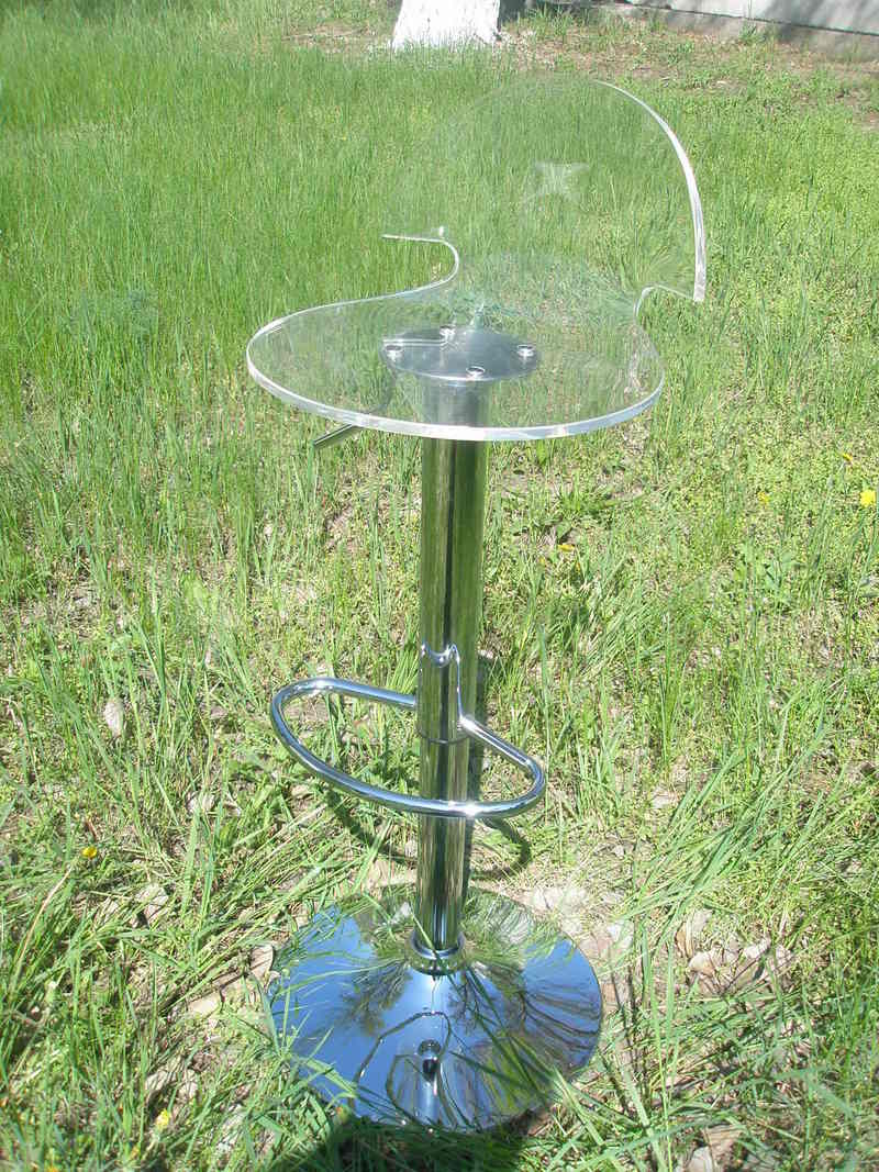 Барный стул, высокий, поворотный, верх акриловый, цвет прозрачный, хромированная основа, регулируется по высоте, подножка хромированная, 38*45, высота сидения 56 - 78, дизайнерская копия барного стула Лили. |
