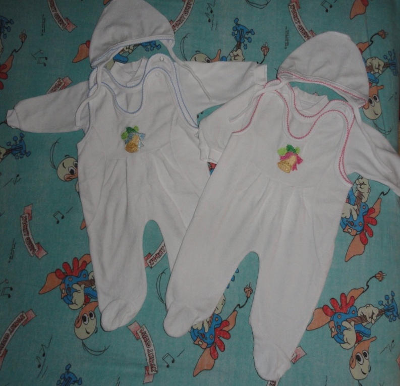 Костюмчики-троечка - кофточка, шапочка, ползуночки. Всё в идеальном состоянии! Для Королевской двойни. Подойдут по размеру где то от 4-х до 7-ми месяцев. |