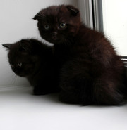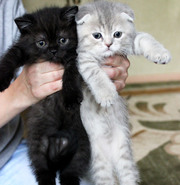 Продаются черный прямоухий мальчик и его голубокремовая пятнистая сестричка (окрас g 24). Рождены 7 августа. Приучены к лотку с наполнителем в виде гранулята из хвойной древесины и когтеточке. Кушают натуральную пищу и консервы «Royal Canin» «Babycat». Детки умные, ласковые и абсолютно ручные. Прошли обработку от глистов. Есть метрика. Цена за «прямоушку» - 800 грн., за вислоухого – 1300. |