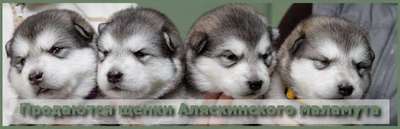 Предлагаются к продаже и резервированию щенки Аляскинского маламута. От прекрасной молодой пары: мама Runa и папа Aurum Korona Dneprovskoy Imperii, родились щенки 13. 01. 2014 г в ночь на Старый Новый Год. Два мальчика и две девочки. Щеночки здоровые и крупные, взяли от родителей всё самое лучшее. Прекрасная Родословная и экстерьер. Условия покупки и резервирования обговариваются индивидуально, возможна доставка.Тел. 0504977448 Дмитрий.0990113185 Ирина. |