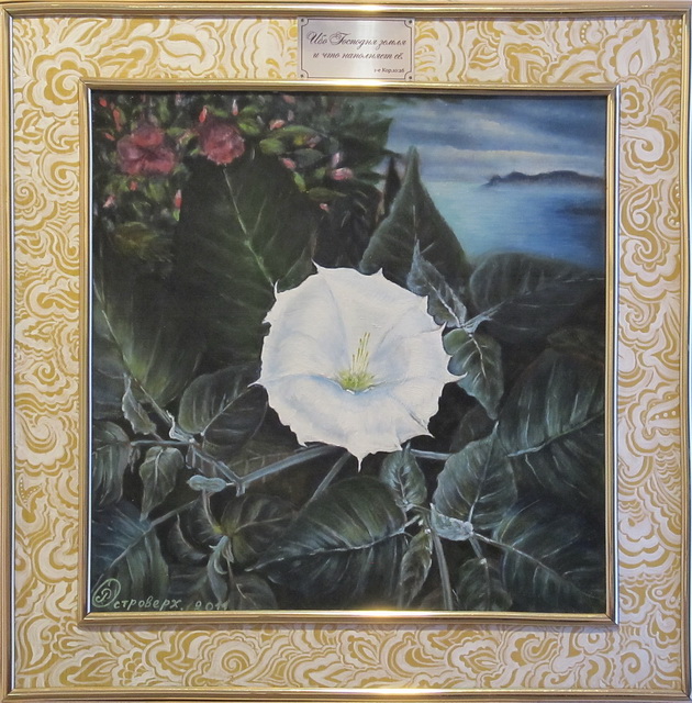 «Пейзаж с белым цветком», дерево, масло, акрил, авторская роспись, 51х51, 2011 г. Работа участвовала во многих выставках. Цена 50 $ США. Для получения более подробной информации тел.: +7(978) 743-23-79, через Viber, по E-mail: a.ostroverh@mail.ru, Skype: Ostar2011, Крым, г. Феодосия. Самовывоз, возможна доставка по Крыму и за пределы любой курьерской службой. |