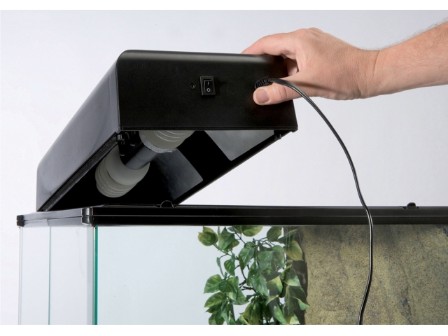 Светильники Exo-Terra Compact Top – компактные плафонные светильники для террариумов или аквариумов под лампы Repti Glo 2.0/5.0/10.0 Compact, разработанные для использования в стеклянных террариумах Exo Terra или аквариумах. Эти легко устанавливаемые светильники могут быть оснащены компактными флуоресцентными лампами или лампами накаливания небольшой мощности. Комбинация двух разных компактных флуоресцентных ламп Exo Terra Compact Top для создания идеального соотношения ультрафиолетового и видимого света, а использование в качестве источника света лампы накаливания, такой как Exo Terra Sun Glo, позволит повысить общую температуру воздуха в террариуме. Дополнительные аксессуары Exo Terra, такие как цифровые термометр и гигрометр, а также термостат и гигростат, могут быть установлены в специальный желоб на верхней стороне светильника.