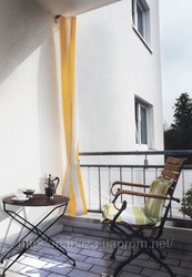Тенты складывющиеся. Тенты могут складываться в гармошку, системы складывания ткани разные: на троссах или на ламелях. На ламелях тент выдерживает большую ветровую нагрузку, небольшой уклон тента дает возможность стекать дождевой воде. Размеры тентов различны, шести метровые ламели дают воможность покрывать любые террасы. Убираются тенты за счет натянутых над ним веревкой, возможна установка автоматики. Цвет ламелей белый.http://ark-tehnik.prom.ua/