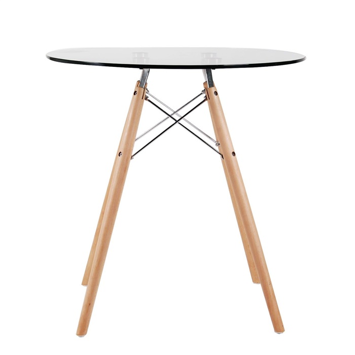 Обеденный стол, круглый, стеклянный, столешница из закаленного прозрачного стекла толщиной 10 мм, ножки деревянные, диаметр столешницы 80 см, высота стола 73 см Каркас дизайнерского кухонного стола DSW Table Eames Style выполнен из прочного металла и стекла. Интересная форма конструкции каркаса несет не только визуальный и стилистический характер, а также обеспечивает устойчивость и надежность. Цвет: Прозрачный |